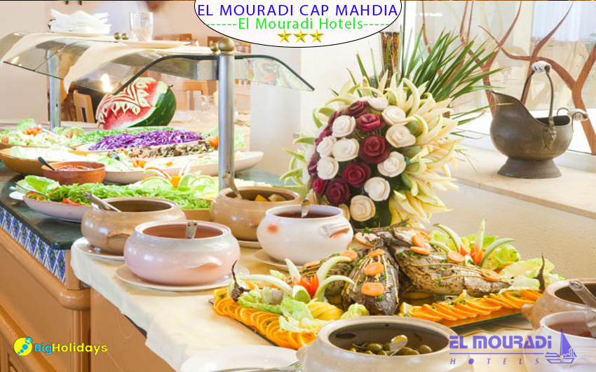 L hotel El Mouradi Cap Mahdia offre 2 restaurants dont un en plein air, 1 snack-pizzeria et 1 bar.