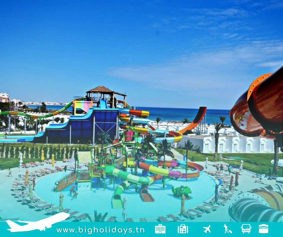 Grande piscine exterieure avec des toboggans, piscine relax pres de la plage, piscine pataugeoire pour enfants, piscine couverte au centre de balneotherapie Elyssa Spa. Courts de tennis en quick (location de materiel, raquettes et balles payants), mini golf, petanque, tir a l arc, aerobic, sports nautiques : planche a voile, canoe, beach-volley. Mini- Club pour les enfants de 4 a 12ans avec aire de jeux. Avec participation: jet-ski, ski nautique, banane, plongee sous-marine. Animation diurne et nocturne, diners et journees a theme, spectacles tous les soirs. Avec participation : eclairage de tennis, billard. Discotheque (boissons payantes).