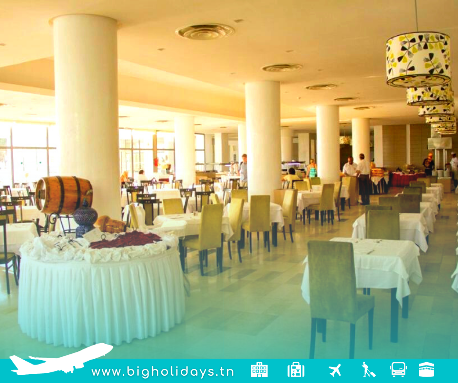 * 5 Restaurants au total dont 4 restaurants a Theme sur reservation sur place : Restaurant Al Walima Restaurant Dolce vita Restaurant Al Cham restaurant le Pecheur Restaurant Al Bahr
